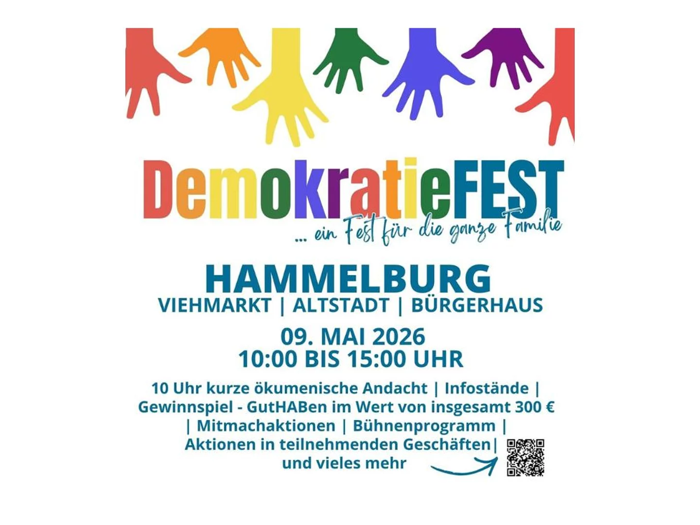 Unter dem Motto „DemokratieFEST – ein Familienfest für alle“ lädt der Aktionskreis für Demokratie gemeinsam mit zahlreichen Vereinen, Schulen, Initiativen und Einrichtungen zu einem bunten Aktionstag auf den Viehmarkt, in den Geschäften und in das Bürgerhaus zum Tag der Städtebauförderung ein.
